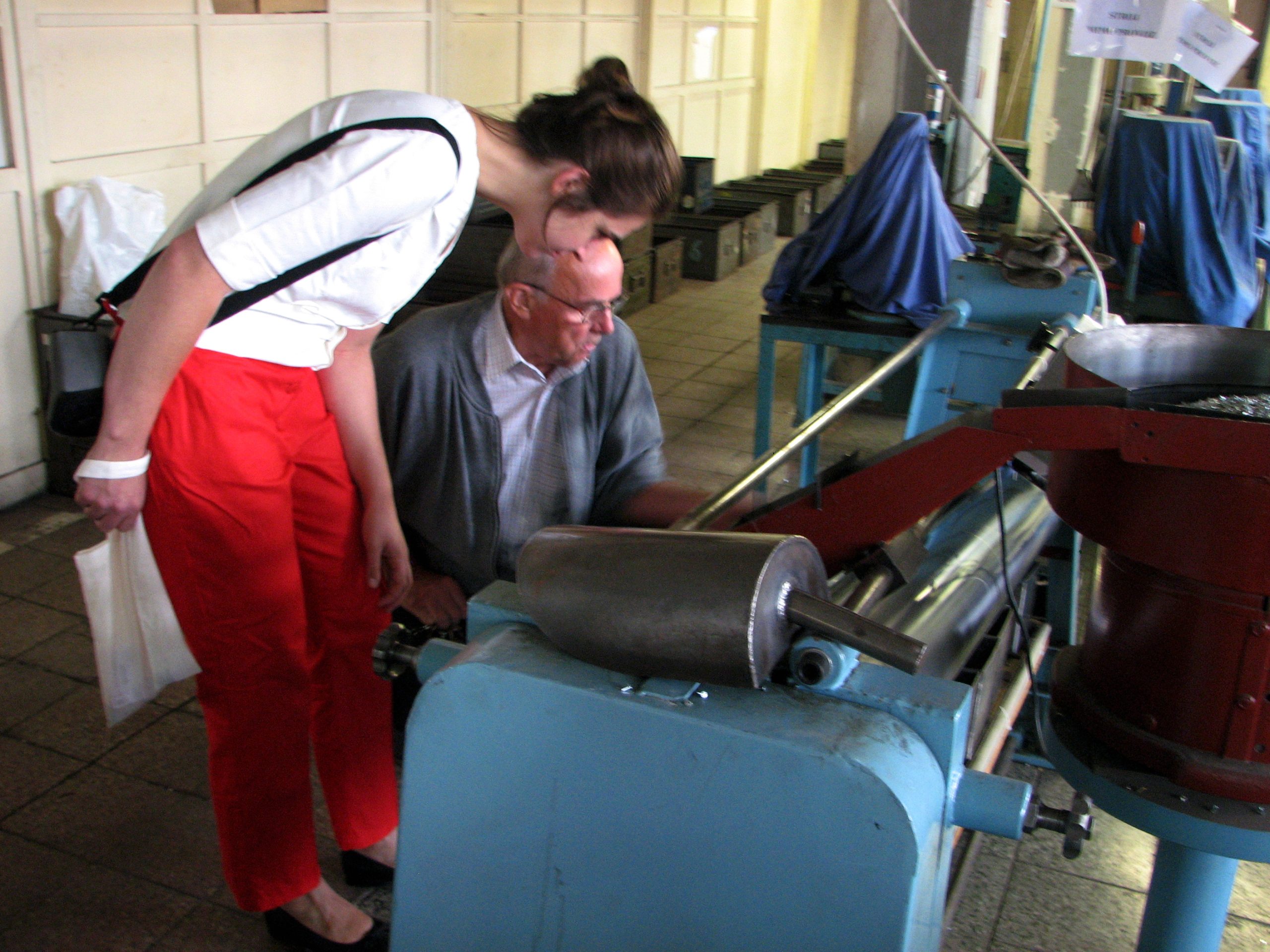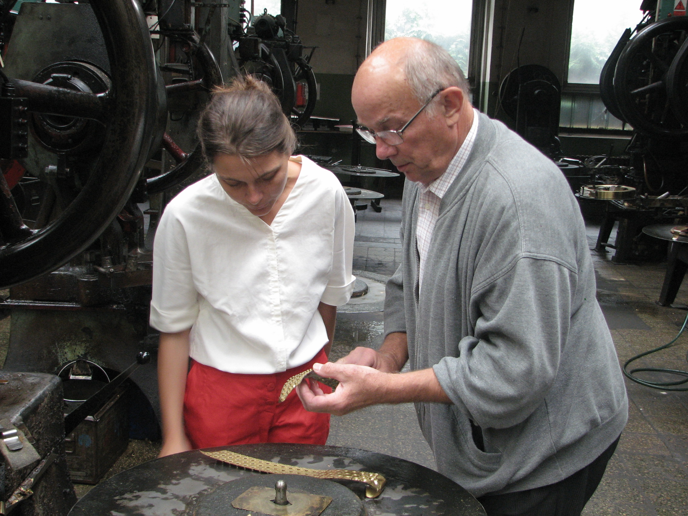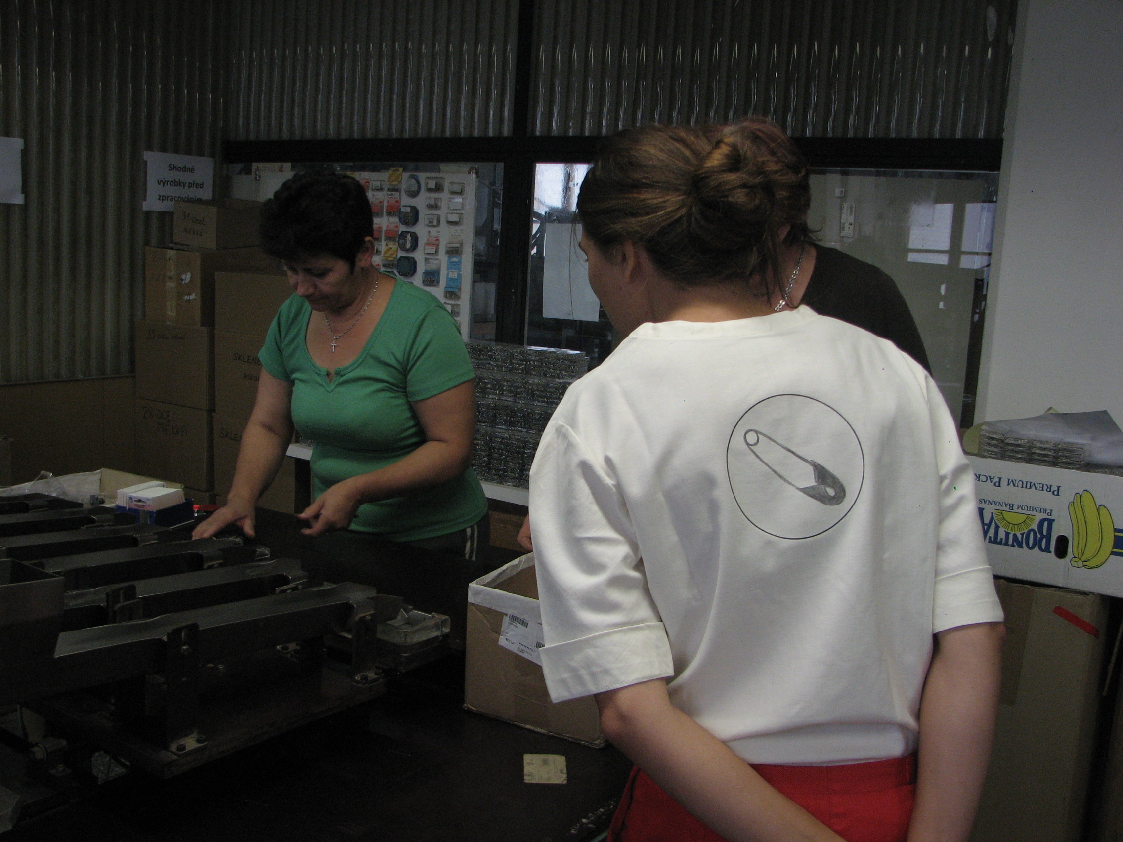 Začaly jsme u výrobních strojů na výrobu klasických patentek /pocházejících z dob FY Waldes a spol./, kdy výroba probíhá z plechu lisováním. Nahlédly jsme do prostor, kde se kovové výrobky pozinkovávají. V druhé budově jsme navštívily sklad hotových výrobků, adjustaci, expedici. Naposledy jsme se dostaly