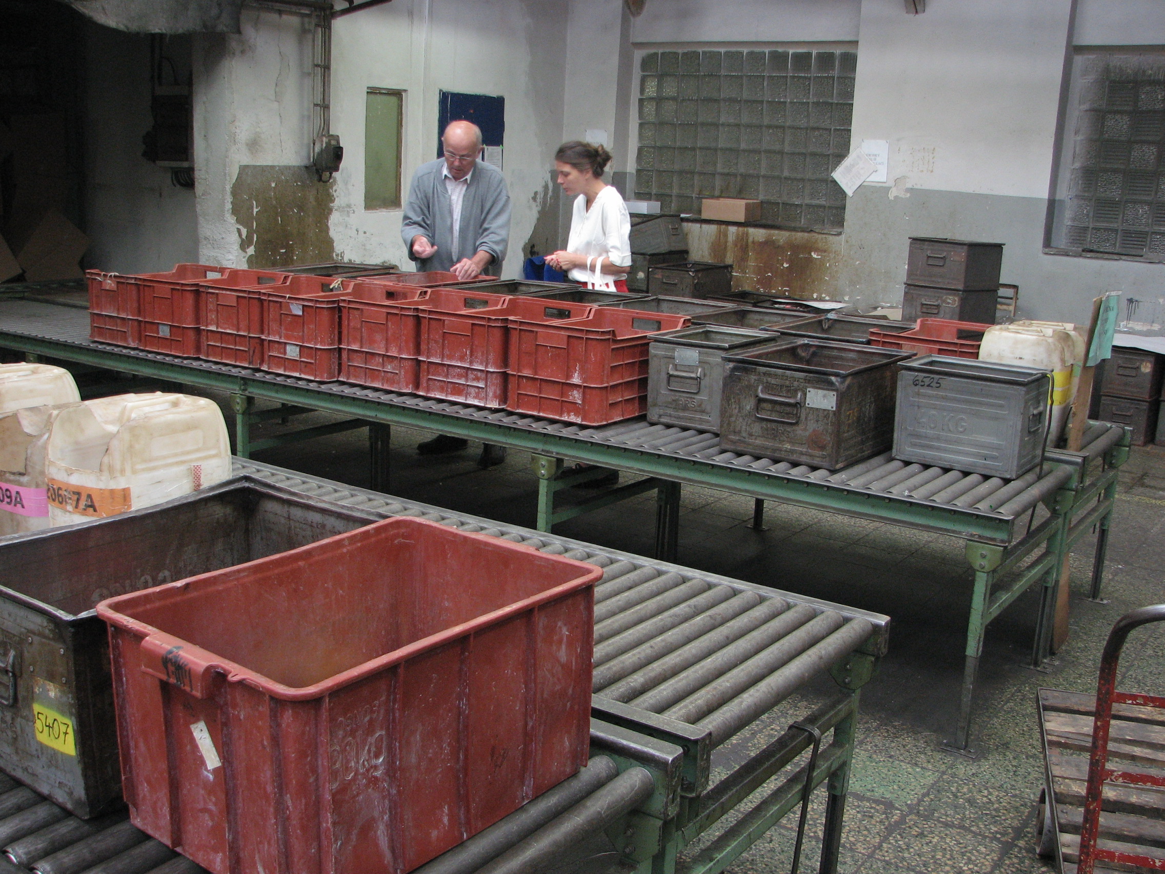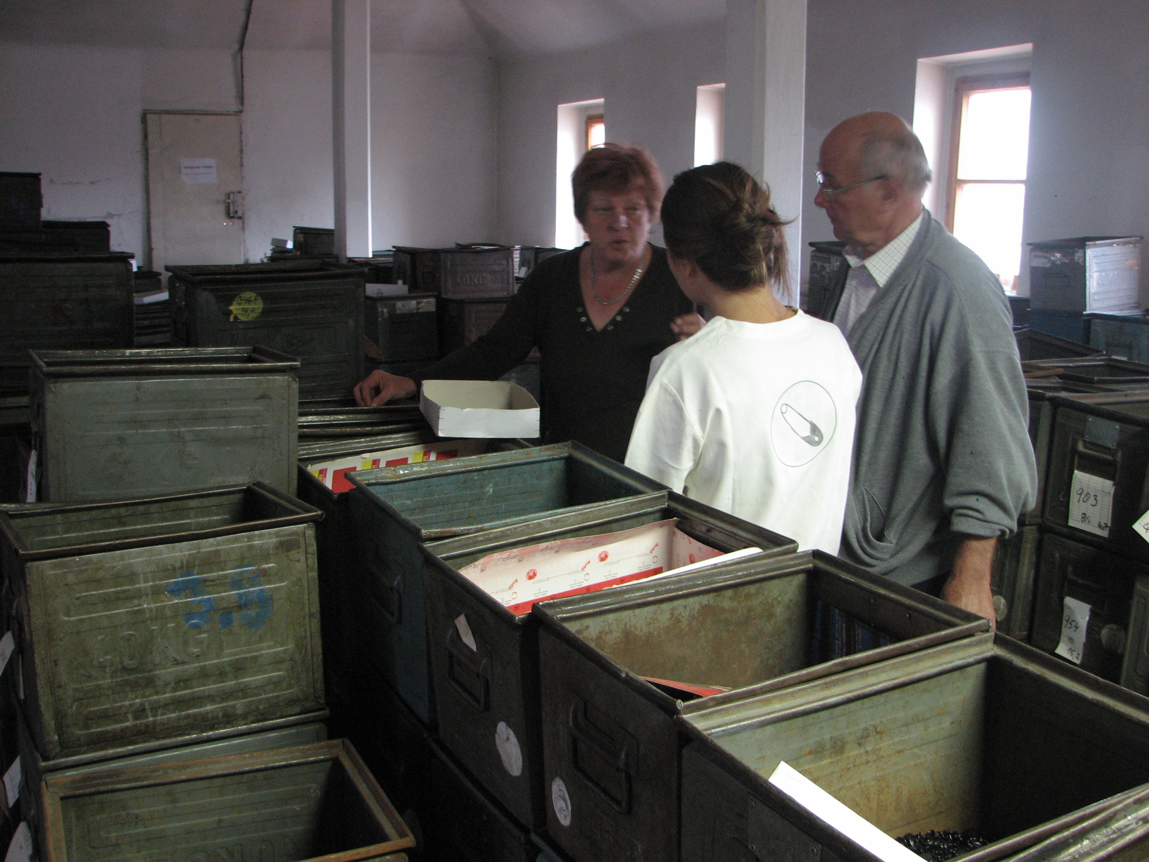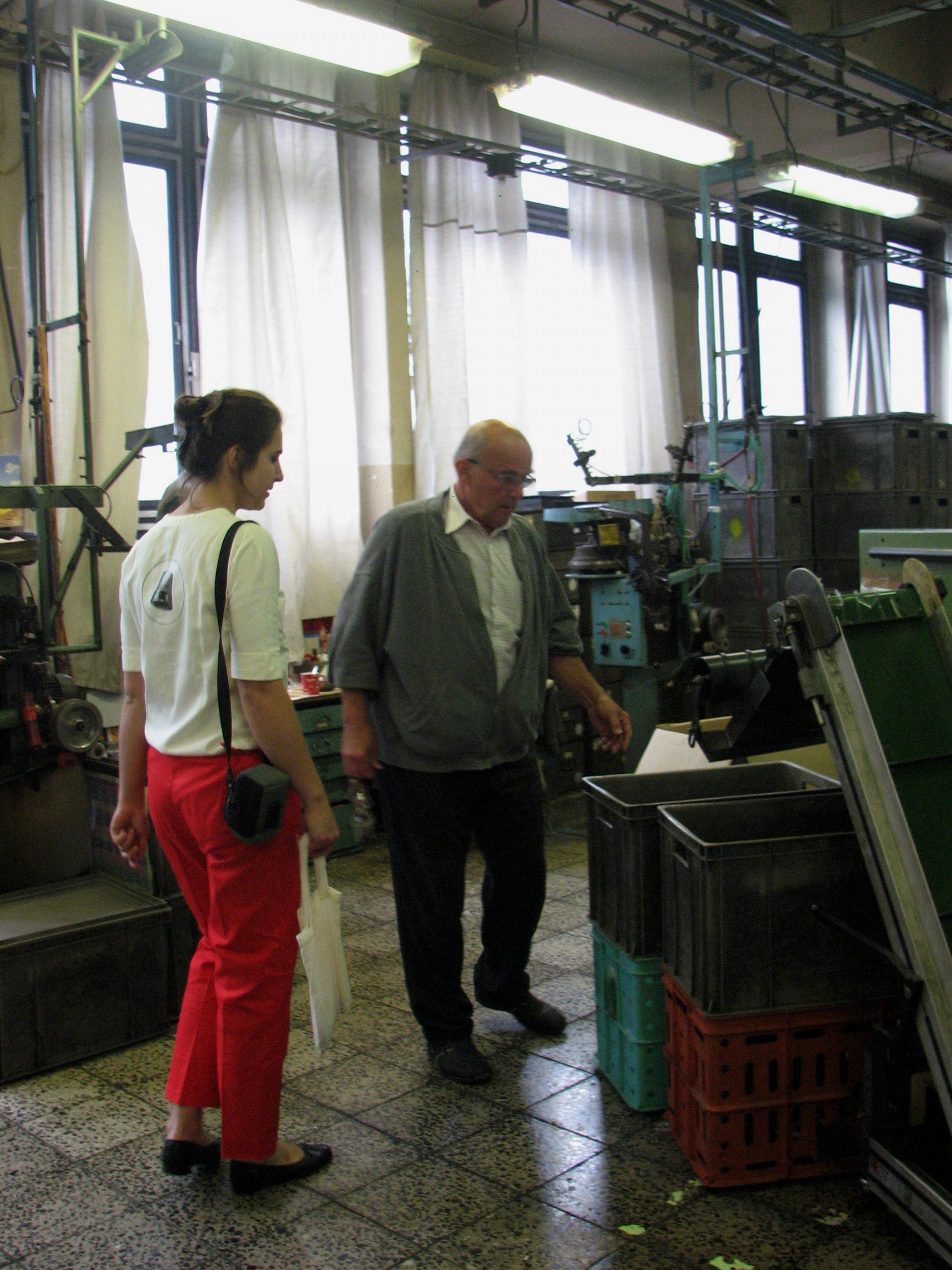 Začaly jsme u výrobních strojů na výrobu klasických patentek /pocházejících z dob FY Waldes a spol./, kdy výroba probíhá z plechu lisováním. Nahlédly jsme do prostor, kde se kovové výrobky pozinkovávají. V druhé budově jsme navštívily sklad hotových výrobků, adjustaci, expedici. Naposledy jsme se dostaly